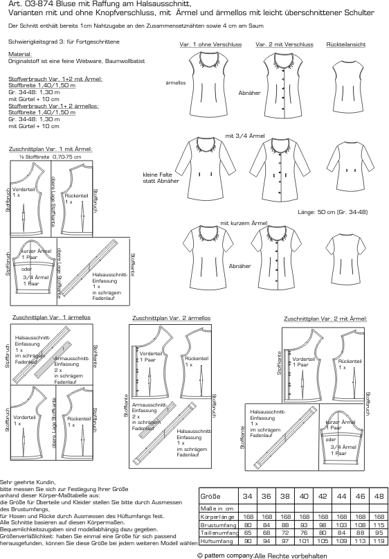 Stoffverbrauch Var. 1+2 mit Ärmel: