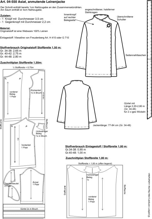 04-550 Asiat. Anmutende Leinenjacke mit angeschnitt. weitem Stehkragen