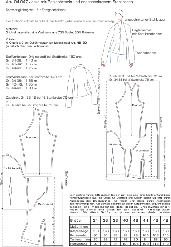 Art. 04-047 Jacke mit Raglanärmeln und angeschnittenem Stehkragen