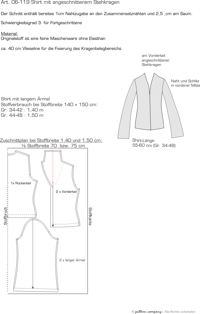 Schwierigkeitsstufe: 3 für Fortgeschrittene, Achtung, Kragenverarbeitung "eckig" eingenäht